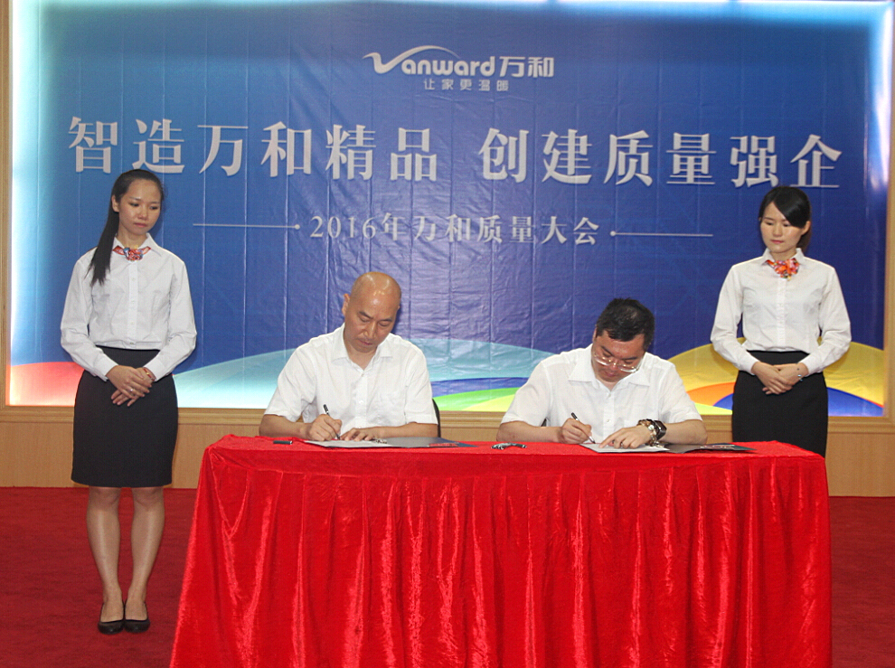 会议最后,副总裁杨颂文代表公司与各事业部总经理签署了质量责任协议书,各事业部负责人都表示,将严格贯彻企业质量管理规章制度,将质量管理层层落实,持续提升质量管理水平,圆满达成2016年的经营目标。