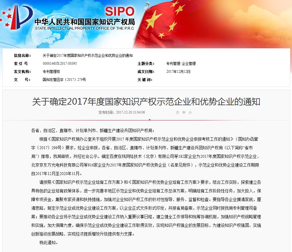 日前,国家知识产权局发布《2017年度国家知识产权示范企业和优势企业名单》,全国共有182家企业入选“2017年度国家知识产权示范企业”,816家企业入选“2017年度国家知识产权优势企业”,广东省仅有22家企业荣登 “2017年度国家知识产权示范企业”,ML官网入选,同时也是广东厨卫行业仅有的两家上榜企业之一。